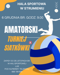 6 grudnia br. odbędzie się Amatorski Turniej Siatkówki. Zgłoszenia do 28 listopada br. w hali lub pod numerem telefonu668184655.